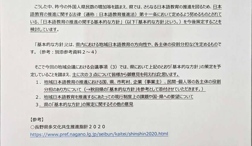 令和7年(2025年)1月21日(火)、諏訪市役所にて長野県・県民文化部・文化政策課多文化共生・パスポート室主催の令和6年度地域日本語教育の体制づくり事業 地域会議(諏訪地域)に参加しました。